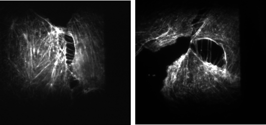 某实验将高量子效率的Gloria 4.2科学相机集成于SIM超分辨显微系统,实现100 fps下对细胞样本的百纳米级分辨率成像,突破衍射极限,清晰可辨微管纤维分支点、交叉形态等(见图1)。