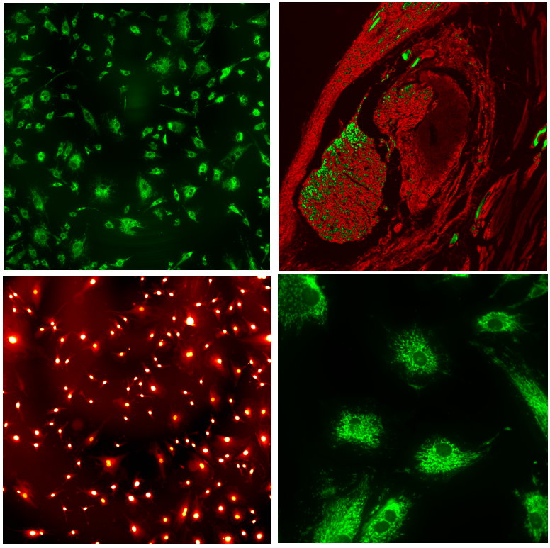 宽场荧光成像是生命科学研究中最基础、应用最广的成像模态,适用于细胞标记、亚细胞器定位、基因表达分析等场景。千眼狼Gloria系列sCMOS相机已应用于转盘共聚焦、光片显微镜、流式细胞仪等多种宽场成像系统,其灵敏度、均衡性、稳定性已得到实践验证,见图3。