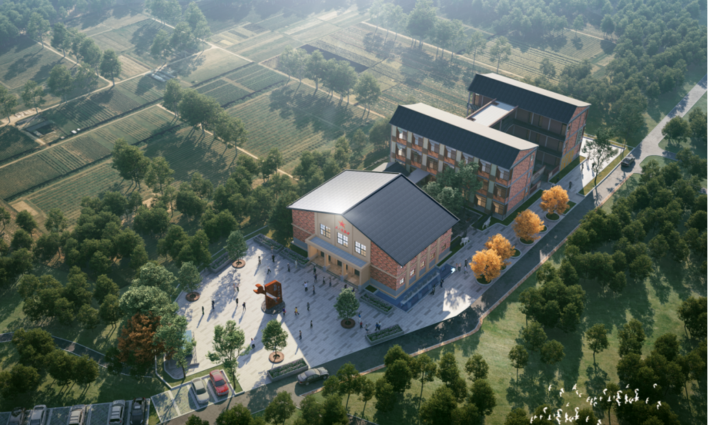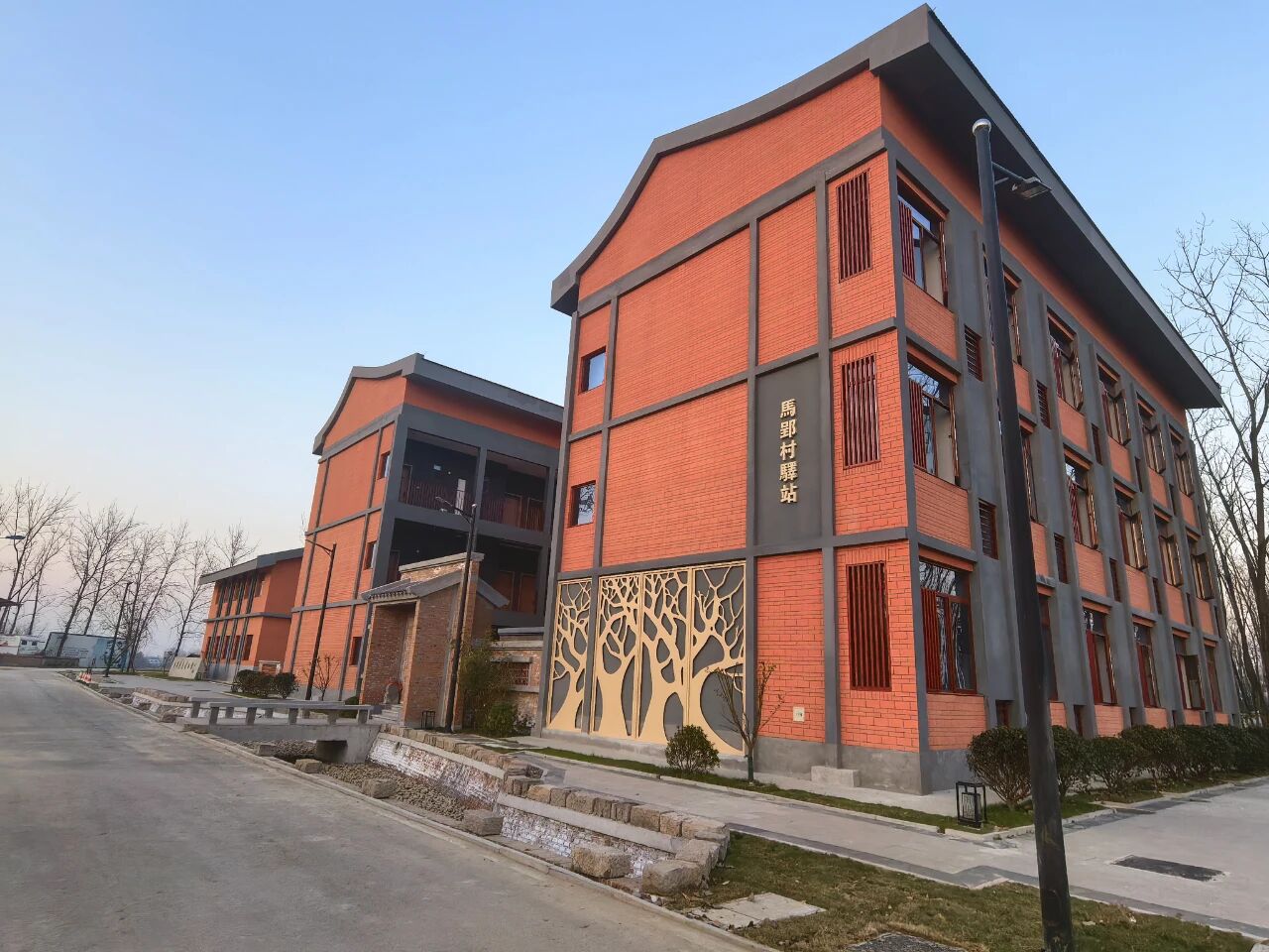 马郢村承载着长丰县“长治久安、人寿年丰”的历史底蕴,如今以草莓文化节、戏曲传承和乡村旅游为特色,形成了独特的“马郢精神”。项目团队用“一座楼、一条路、一段故事”的设计理念,让驿站成为连接过去与现在的文化载体,不仅丰富了乡村旅游服务功能,也成为马郢村展示形象的重要窗口。在规划布局上,充分考虑游客体验,文化广场、服务用房和社区驿站,串联起活动空间、文化鉴赏和休憩需求,使游客能够切身感受马郢村的历史与温度。建筑外立面采用仿红砖风格,搭配错落砌筑的院墙和精致的水景,既保留了乡村建筑的质朴感,又通过现代设计语言营造出简洁舒展的空间,使建筑本身成为一道“会说话的风景”。建筑主体采用装配式钢结构建造,在保证安全稳固的同时,通过细节传递人文关怀,让硬朗的结构中蕴含柔软的生活温度。