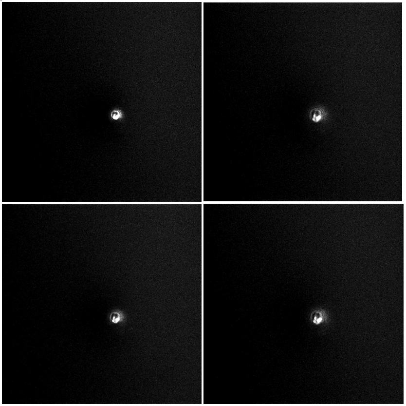 动态范围上,sCMOS相机在同一画面中同时清晰捕捉了微腔中心的强激光点与边缘的弱散射信号,证明Gloria 4.2在强弱光共存场景下的优异性能。
